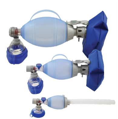 Silikonski dihalni baloni s hipnim povratkom, z vrečko za rezidualni kisik, različne velikosti ( za odrasle, otroke in dojenčke), z maskami različnih velikosti